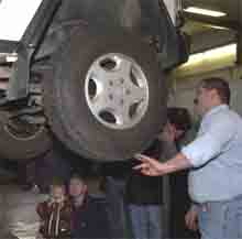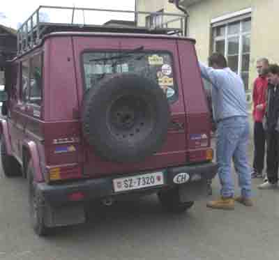 Von der Demonstration der Antriebskonzepte bei G- und M-Klasse, über die Montage der Schneeketten, das Abdrücken und Aufziehen eines Reifens, Erläuterungen zu wichtigen Punkten bei der Benutzung der Fahrzeuge. Auch wenn man schon alles über den G zu wissen glaubt, man erfährt hier doch wieder etwas Neues. Josef vermittelt uns in Kürze was an den neuen G's mit der aktuellen Modellpflege alles verändert wird. Natürlich gehen wir auch auf das lieferbare Sonderzubehör ein. Resu zeigt die verschiedenen Modifikationen welche man am G machen kann, beispielsweis die Nachrüstung eines Zugmauls in der Frontstossstange welches bei den neueren G's leider nicht mehr eingebaut wird.