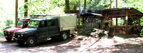 irgendwo unterwegs...![]() Bei der Ausfahrt aus dem Bachbett, kurz vor dem Ziel ![]() und am Ziel: Im Hintergrund heizt Resu ein; es sind keine alten Teppiche die er verbrennt... ![]() Alle sind angekommen. Parkordnung der Umgebung sauber angepasst. ![]() Gemütliches Beisammensitzen: Peter erzählt von seiner Reise mit dem G500 in die Mongolei. ![]() Wunderschöne, gemütliche Feuerstelle. Die Diskussion handelt bestimmt über die bevorstehende Clubreise. |